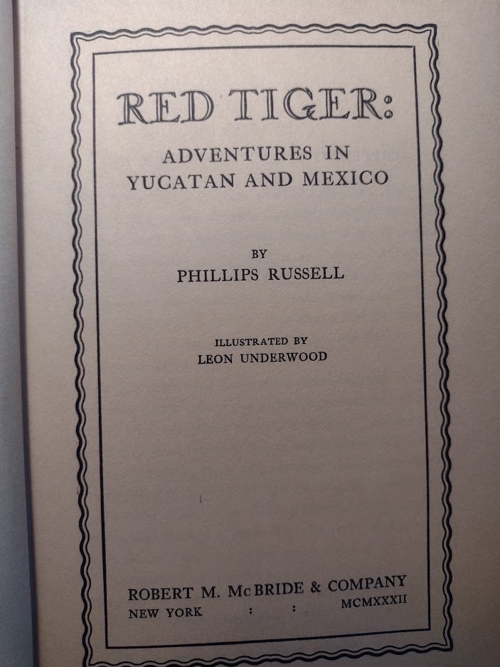 Another author makes an unannounced contribution to “The Man of Bronze” with Phillips Russell’s publication in 1929 of “Red Tiger: Adventures in Yucatan and Mexico.” Phillips C. Russell (1884-1974) was a prolific author and served on the faculty at the University of North Carolina from 1931-1954.